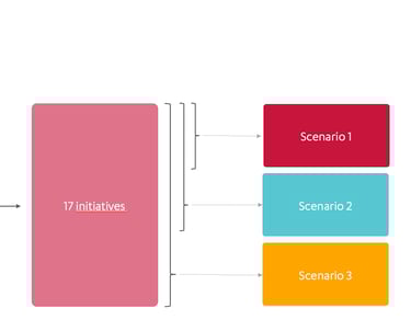 From this, we defined 17 concrete initiatives, which were ultimately combined into three scenarios. Each scenario’s impact was evaluated through a business case analysis and its environmental performance.